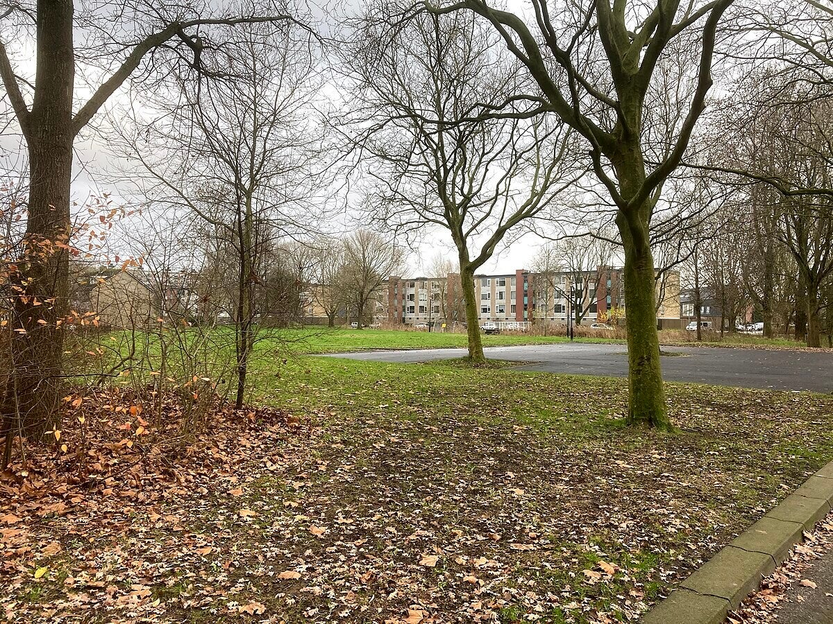 Ik tik als trefwoord de naam van de wijk in en krijg tal van treffers. Een van de foto’s is genomen vanaf het dak van de melkfabriek. De twee schoorstenen daarvan vormden in mijn jeugd, naast de vier flats van negen verdiepingen, de skyline die de grens van de wijk markeerden. Geen huis te zien op de foto, wel weilanden tot aan waar het oog reikt. Links een zandvlakte en een paar heimachines.
